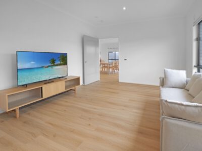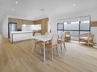 Modern 3-bedroom shared home designed for NDIS participants. Oversized private bathrooms in each participant bedroom. Separate living room, family room and outdoor room. Features state-of-the-art assistive technology with iPad and voice control integration.